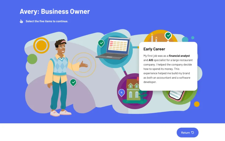 This free digital course, sponsored by the Center for Audit Quality’s Accounting+ program, exposes students to the wide range of careers available in the accounting and finance space. Through interactive real-world scenarios, students compare their own hobbies, interests, and passions to the variety of careers available to those with an accounting background. The curriculum covers the extensive benefits accounting skills can provide in business or daily life, including contexts like entrepreneurship, investing, and personal finance.